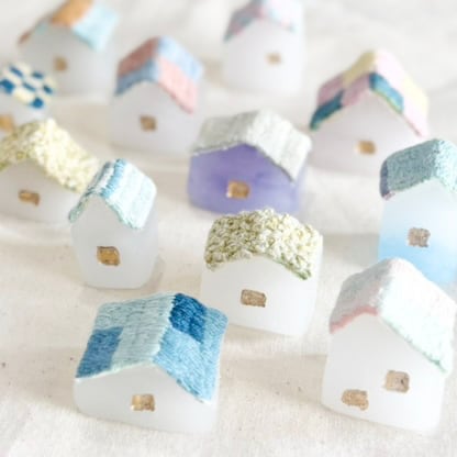 ・屋根には草木染めの糸の手刺繍を施し、一点一点表情が異なります